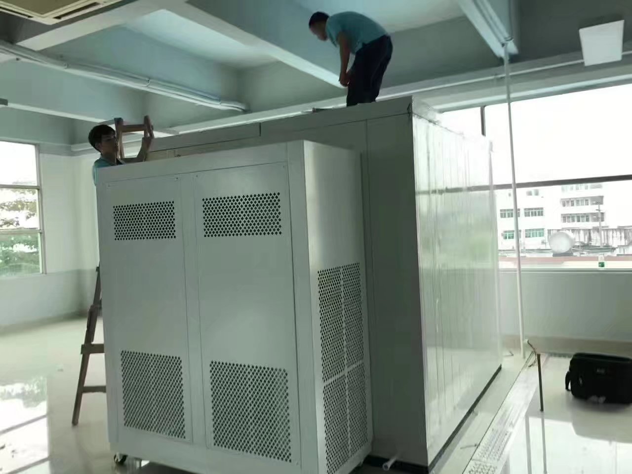直播在客戶現(xiàn)場安裝大型步入式恒溫恒濕室_正航儀器